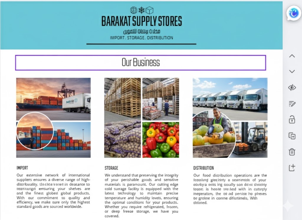 Barakat Supply Stores is a leading name in the logistics and food supply sector. We specialize in end-to-end supply chain management built on three core pillars: importing from the finest global sources, advanced storage in climate-controlled environments (cold and dry), and precision distribution that ensures products arrive fresh and safe. With our deep industry expertise, we are the partner of choice for both retail and wholesale businesses.